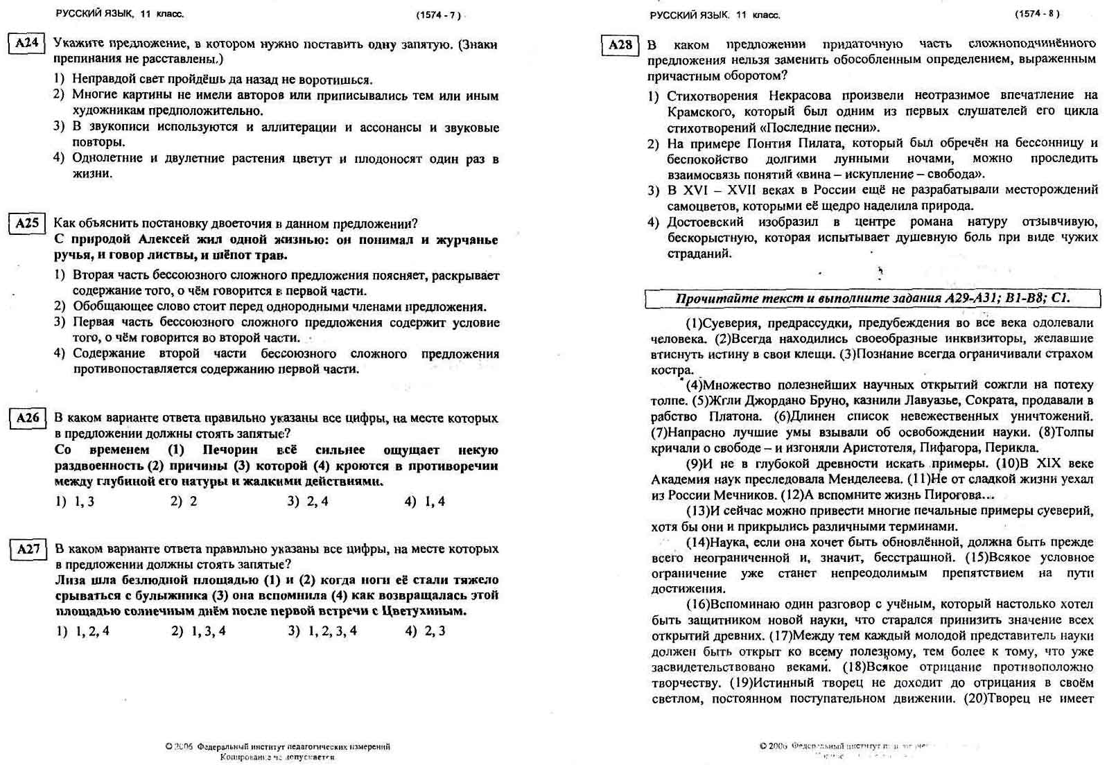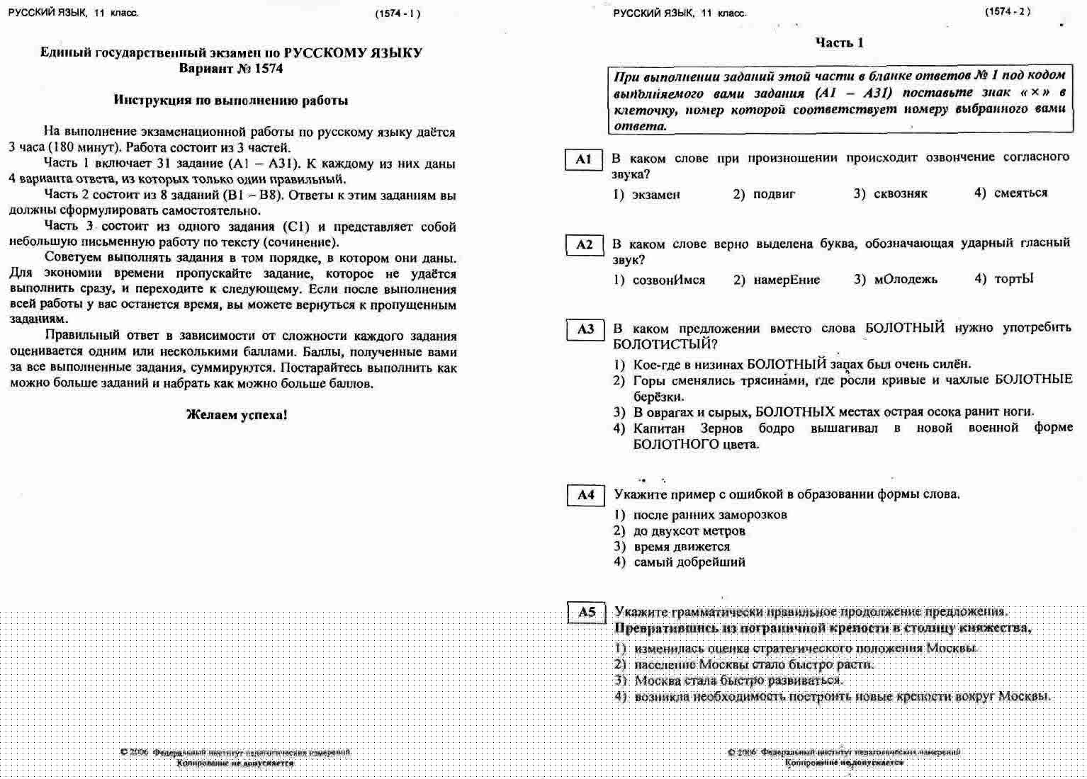 Здесь собраны пробные варианты ЕГЭ по русскому языку с 2009 года по 2006